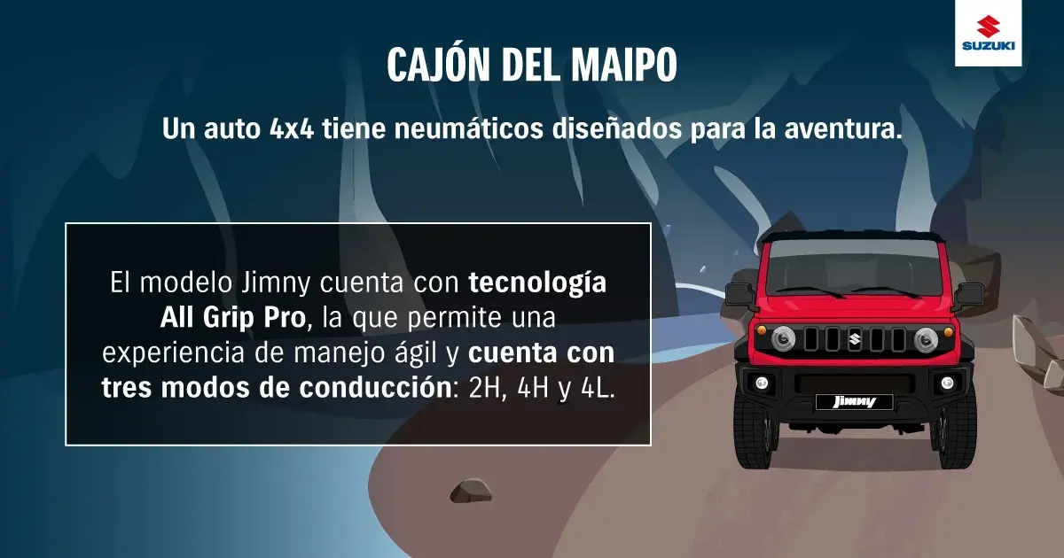 Para disfrutar estos beneficios y aprovechar de conocer nuevos rincones de Chile, el Jimny y el Grand Vitara Hybrid son alternativas ideales para que cada viaje sea inolvidable de principio a fin. Este vehículo ofrece una combinación perfecta de durabilidad y versatilidad, ideal para cualquier tipo de aventura. Ya sea que estés atravesando terrenos difíciles o conduciendo por la ciudad, el Jimny se adapta a todas tus necesidades.