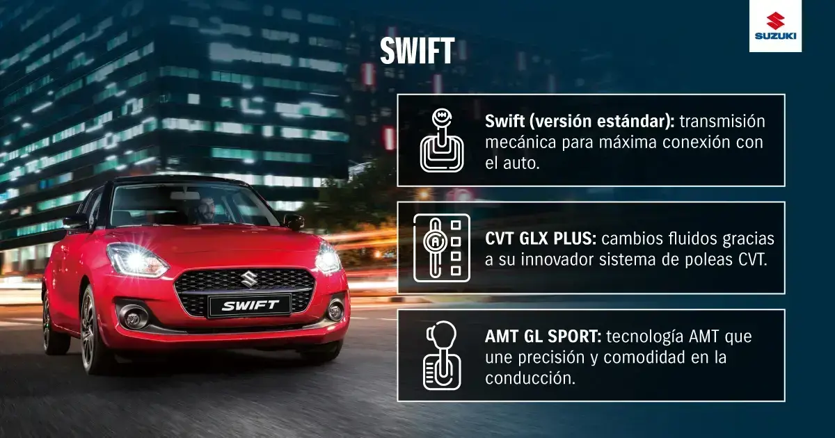 Conoce el nuevo estándar de Suzuki con 6 airbags de serie y consumos de hasta 22,7 km/l. Aprovecha bonos de marzo y cuotas desde 5.000 diarios en Derco para llevarte tu primer auto hoy mismo.
