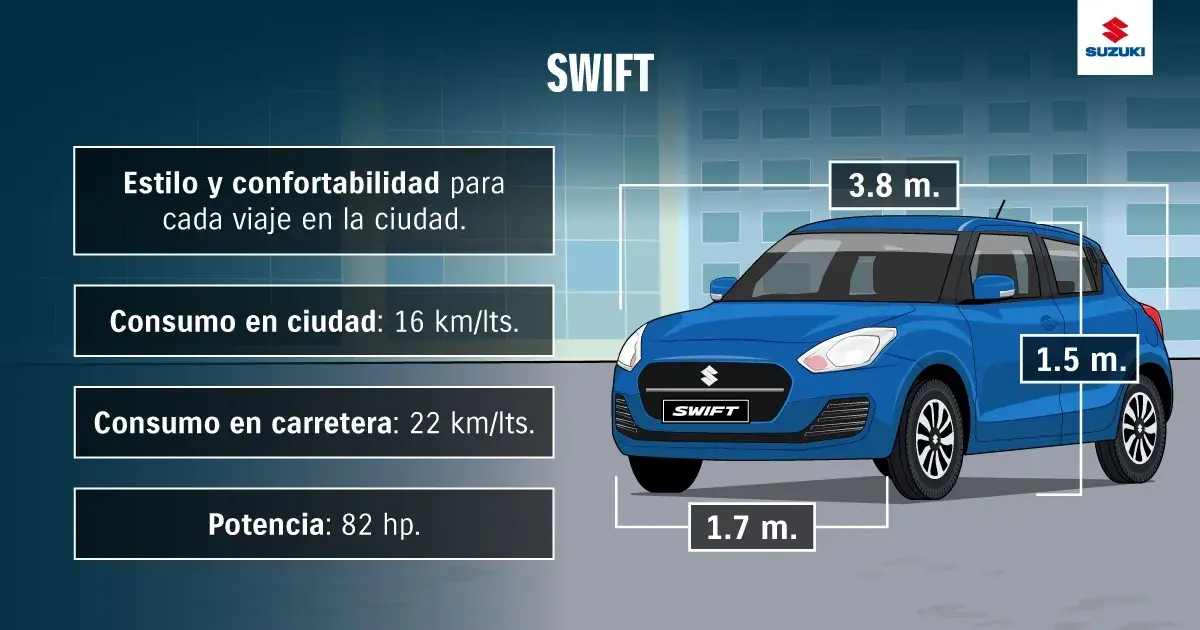 Conoce el nuevo estándar de Suzuki con 6 airbags de serie y consumos de hasta 22,7 km/l. Aprovecha bonos de marzo y cuotas desde 5.000 diarios en Derco para llevarte tu primer auto hoy mismo.